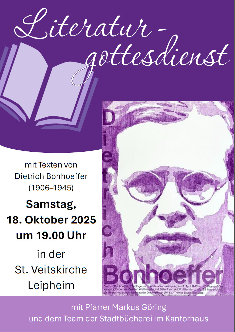 Literaturgottesdienst - Dietrich Bonhoeffer mehr Info